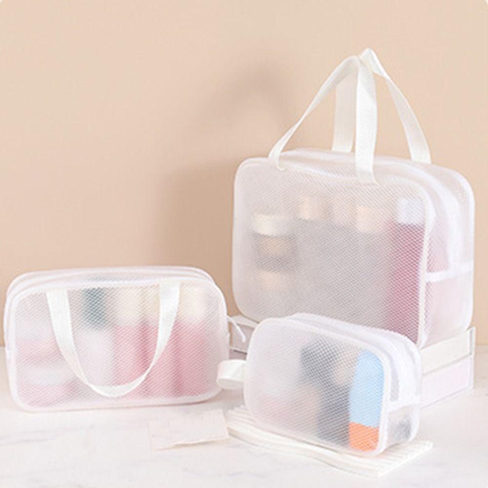 New Large Capacity Mesh Makeup Bag Handheld Transparent Cosmetic Bag Waterproof Zipper Storage Pouch Travel