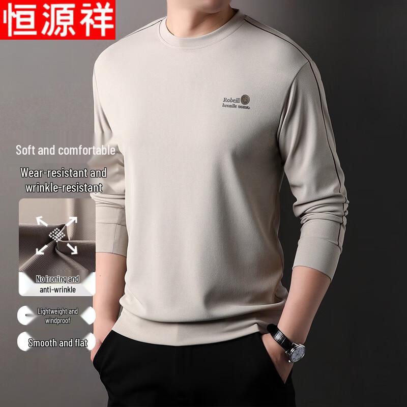 Hengyuanxiang Men's Anti-Wrinkle Long Sleeve Round Neck T-Shirt