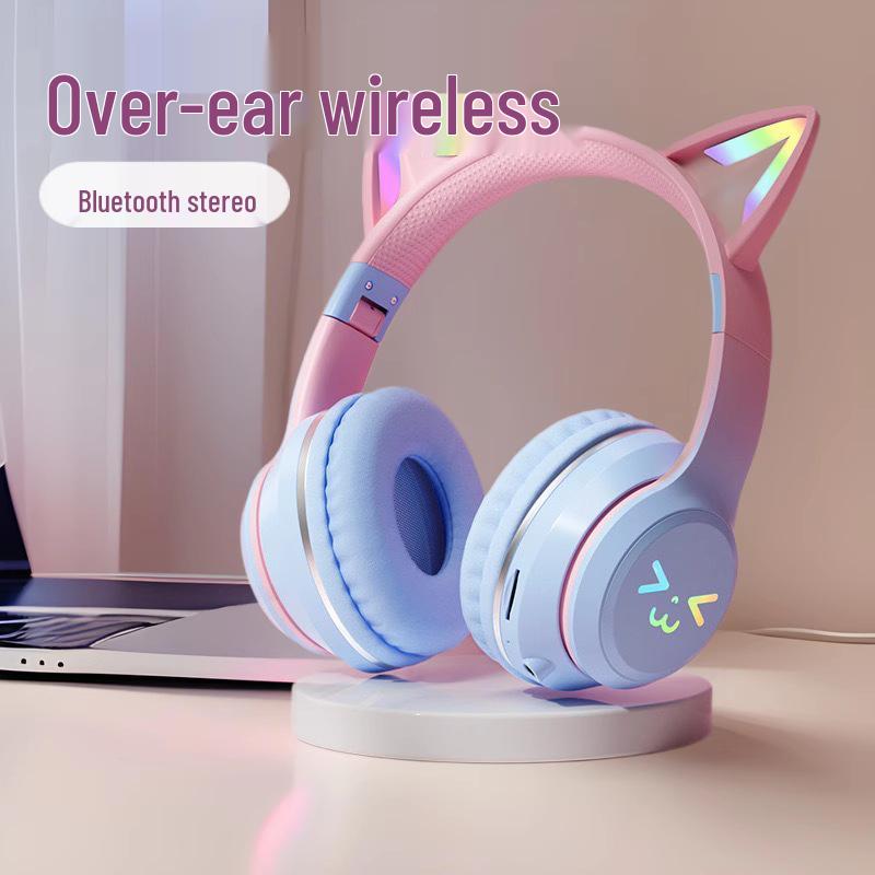 Gradient Cat Ear Bluetooth Over-Ear Headphones: High-Value, Wireless Stereo, Perfect for Gaming & E-Sports