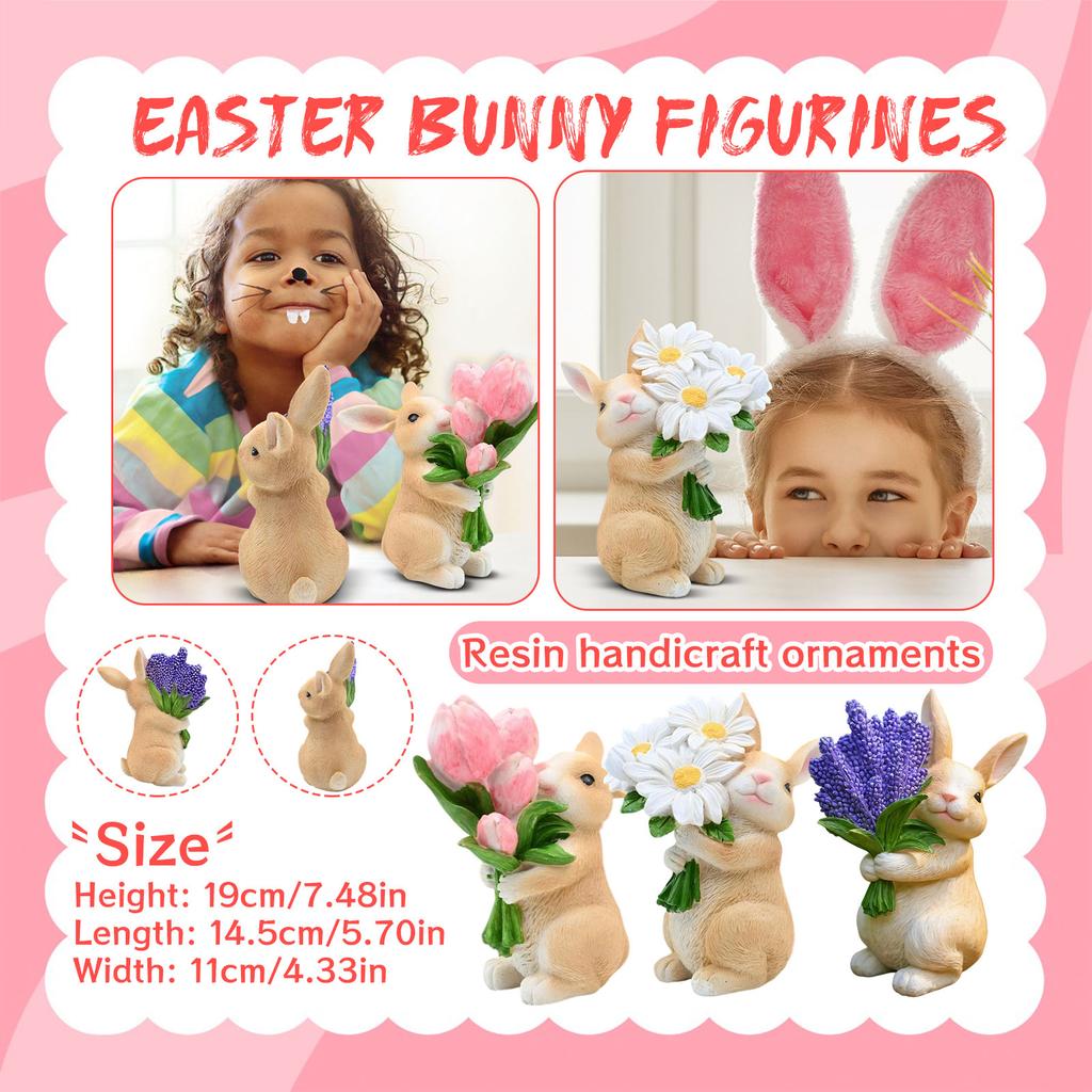 Easter Bunny Figurine, Resin Craft Ornament, Easter Gift, Holding A Bouquet Of Flowers. Cute Bunny Holding Flowers Resin Ornament: A Decoration Full of Springtime Charm This is a set of resin ornaments featuring cute bunnies holding flowers, available in three flower bouquet styles: , , and lavender. They are gentle little items that up your desk and living space.