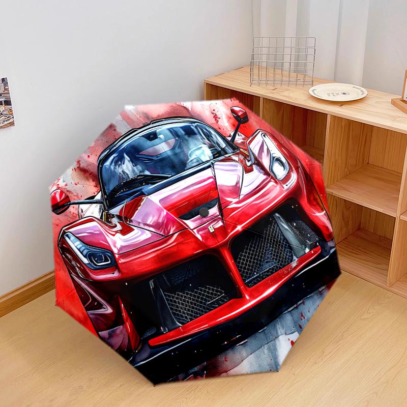 1 PC Automatic Folding Umbrella - Cool sports car Pattern, Portable & Foldable Design with 8 Ribs, Christmas Birthday Gifts