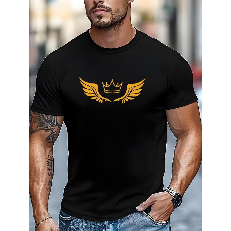 European sizes Men'S Angel Wings Letter Print Casual Comfortable Short Sleeve Crew Neck T-Shirt | Perfect for Outdoor, Holidays