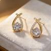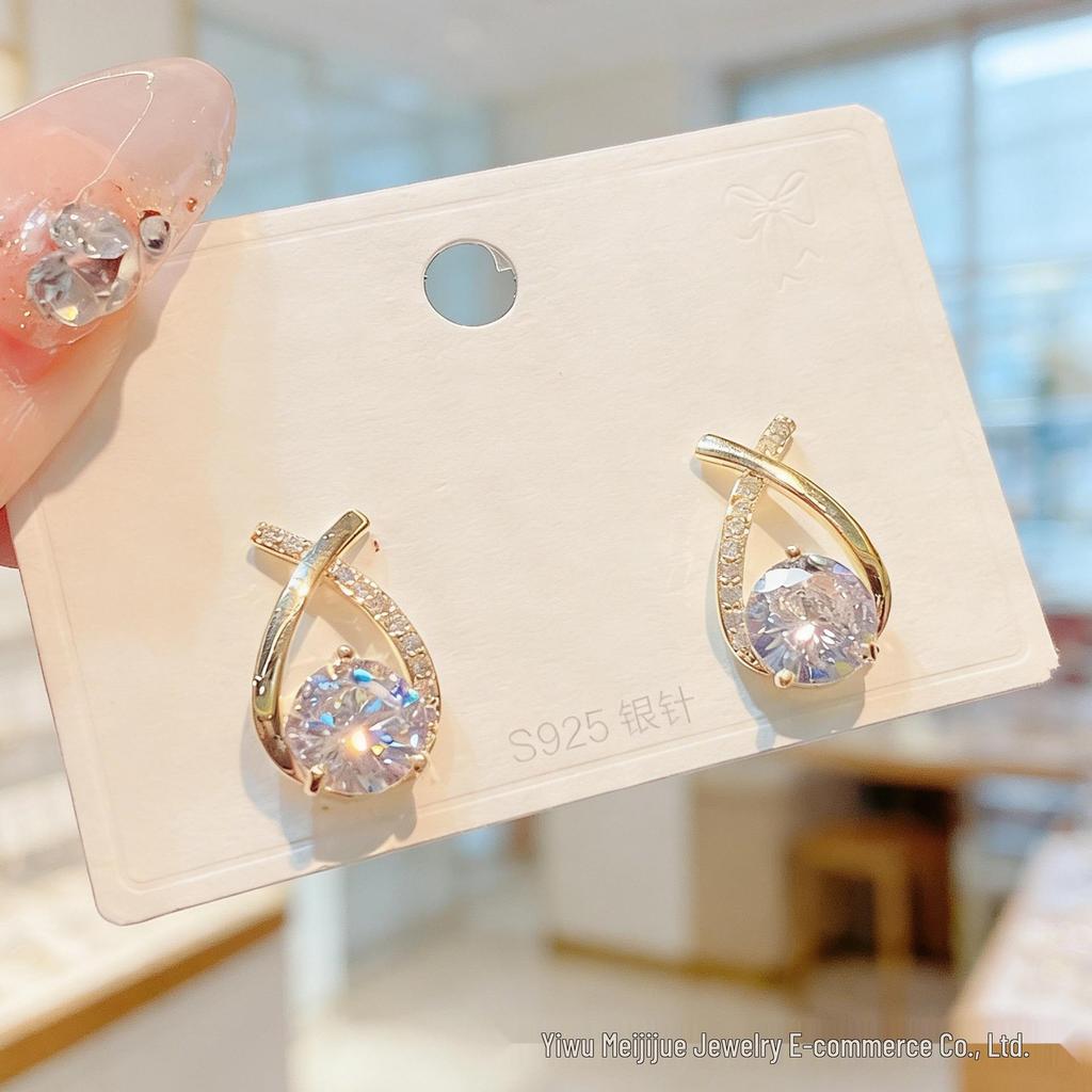 Korean Style Women's Elegant Diamond-Set Crossover Stud Earrings, Versatile and Sophisticated High-End Design.