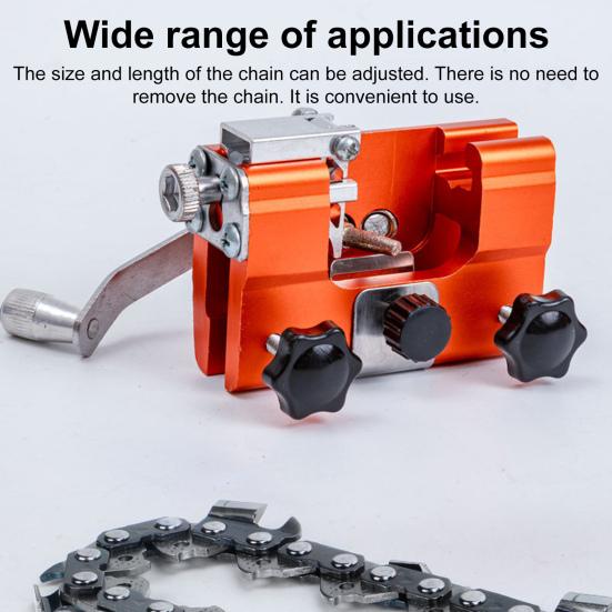 מבנה נירוסטה חזק: עשוי מפלדת אל-חלד איכותית וסגסוגת עמידה, מחדד שרשרת זה מציע עמידות יוצאת דופן בפני שחיקה וקורוזיה.. הידית הארגונומית שלו מבטיחה אחיזה נוחה בשימוש ממושך, בעוד שהמהדק החזק מספק אחיזה בטוחה על כל מסילה של מסור שרשרת.. עיצוב חזק זה מבטיח ביצועים לאורך זמן גם בתנאי חוץ תובעניים.