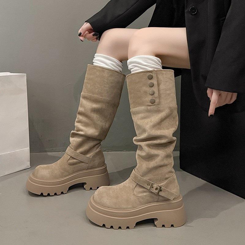 Boots heightened in autumn, thick-soled high heels but knee-high boots, long boots, thin boots