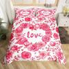 Red Roses Duvet Cover Twin Queen Happy Valentine'S Day Bedding Set Romantic Flowers Comforter Cover Cute Love Heart Quilt Cover