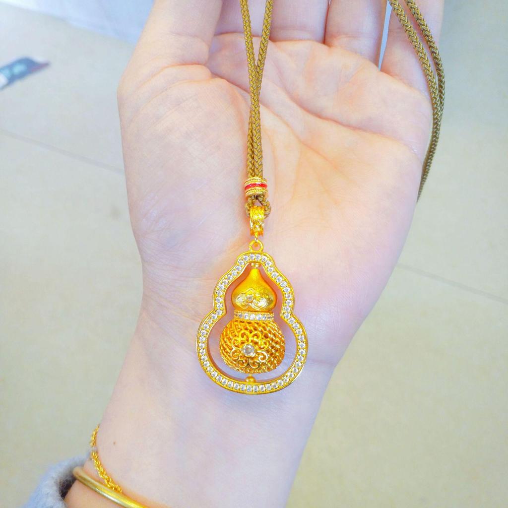 שרשרת תליון דלעת עם אבני חן זהב וייטנאמית: קמע פו לו מסתובב עם עיצוב סיני אלגנטי