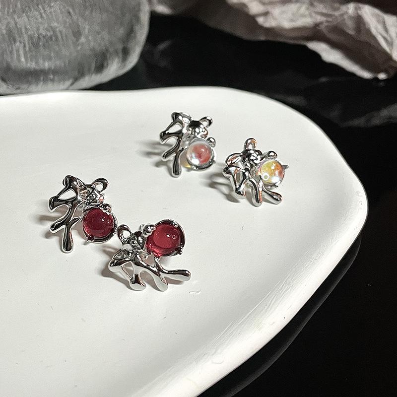 Moonstone Blessing Rabbit Stud Earrings Female Foreign High-End Sense Cute Small Gemstone Personality Niche Design Ear Jewelry