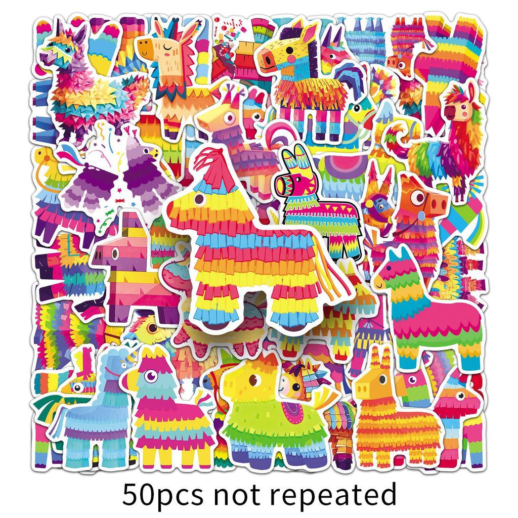 50 Cartoon Waterproof Piñata Stickers for Water Bottles, Journals, Desktops, Helmets, and Epoxy Decor