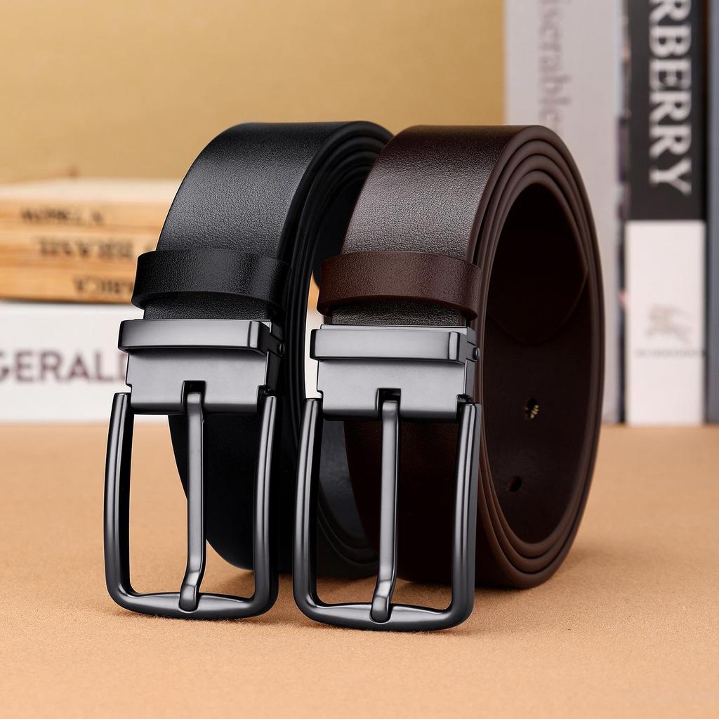 This men's belt is crafted from the top layer of cowhide, offering a blend of durability and elegance. Its minimalist black design paired with a classic pin buckle makes it a versatile accessory, suitable for both formal and casual occasions. The belt is adjustable, ensuring a perfect fit and providing style and comfort for everyday wear.