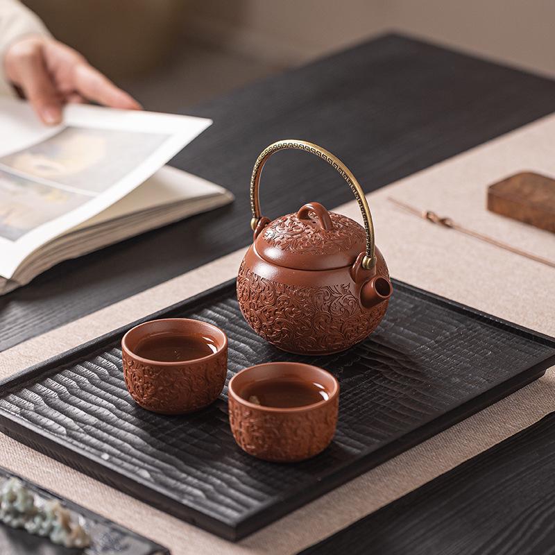 Original Purple Clay Anti-Scald Kung Fu Teapot with Ceramic Handle - Chinese Style Gift Box