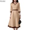 ZANZEA Women Casual V-Neck Solid Color 3/4 Sleeve Retro Dress