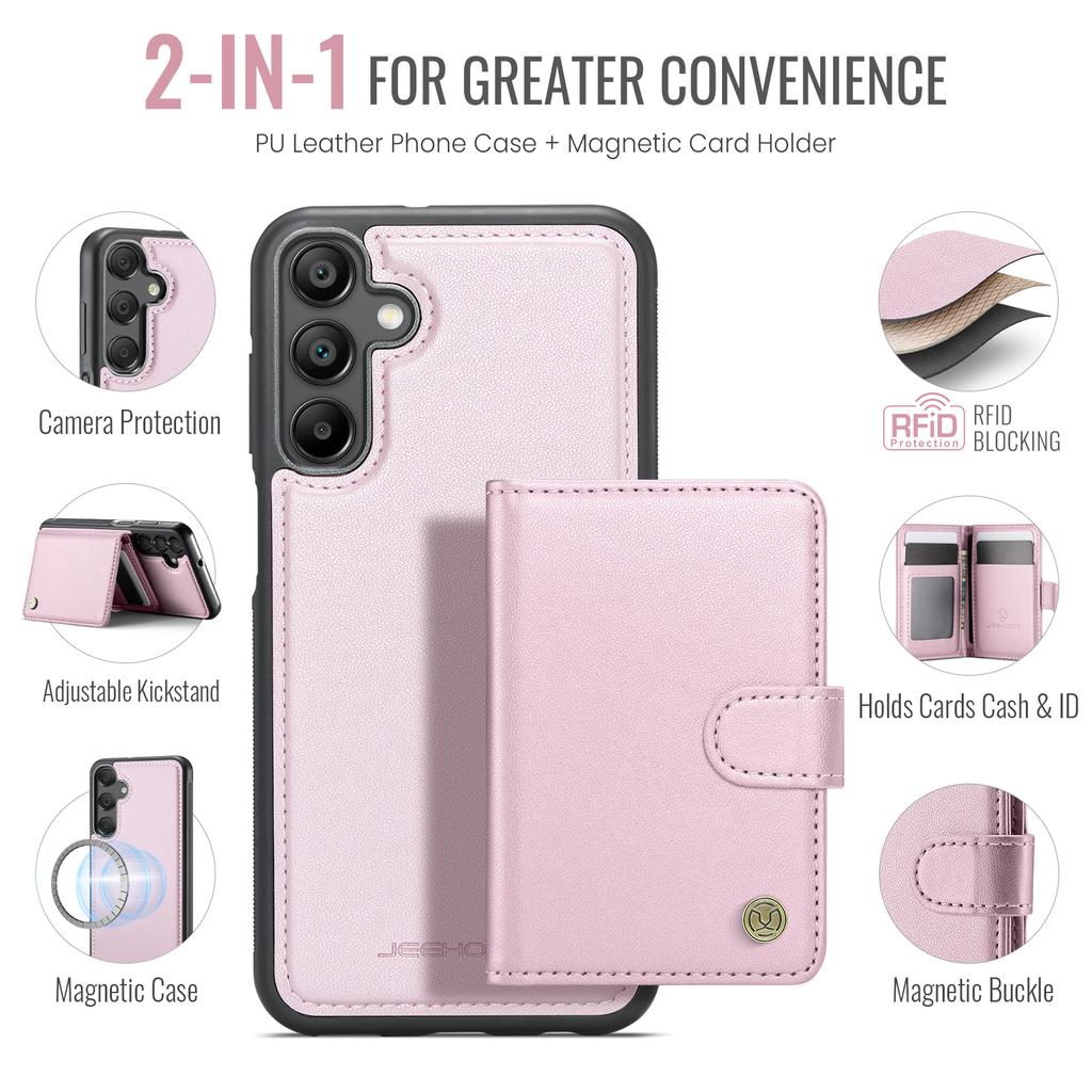 For Samsung Galaxy A25 5G (Global) (161mm) Case JEEHOOD J09 RFID Blocking Card Holder Leather Back Phone Cover Magnetic Case