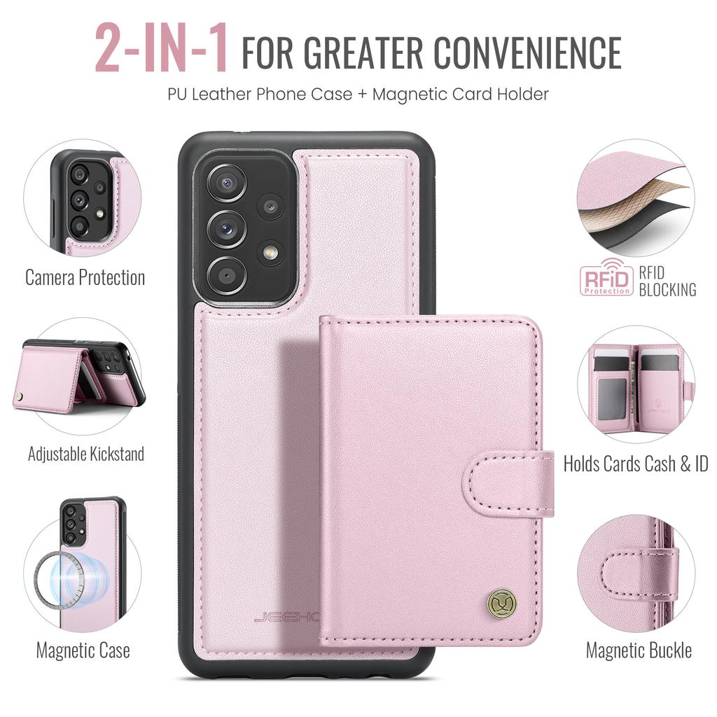 For Samsung Galaxy A52 5G/Galaxy A52s 5G/Galaxy A52 4G Case JEEHOOD J09 RFID Blocking Card Holder Leather Back Phone Cover Magnetic Case