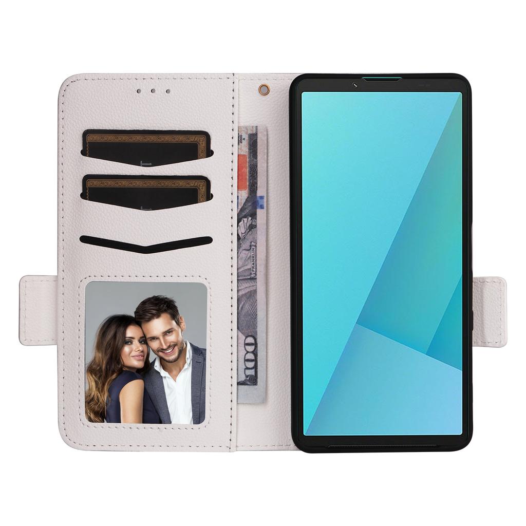 For Sony Xperia 10 VII Case Litchi Texture Wallet Leather Phone Cover with Wrist Strap