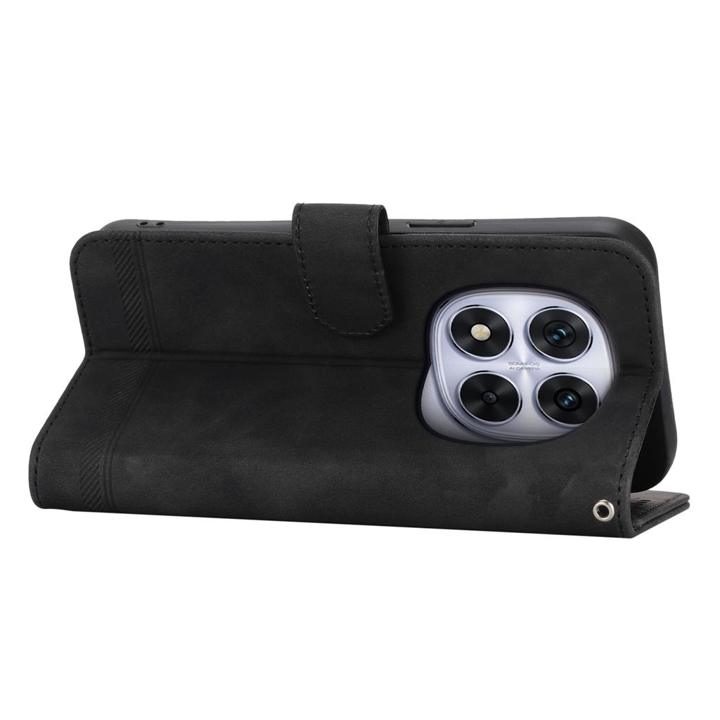 DIERFENG DF-03 For Xiaomi Poco M8 Pro 5G/Redmi Note 15 Pro+ 5G (Global) Case Lines Imprint Wallet Leather Phone Cover with Wrist Strap