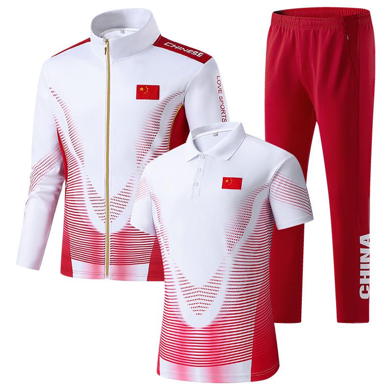 Unisex Chinese Team Tracksuit: Three-Piece Sports and Training Set for Students and Teams