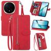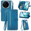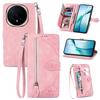 For Honor Magic8 5G Zipper Wallet Case with Strap Flower Imprint PU Leather Phone Cover