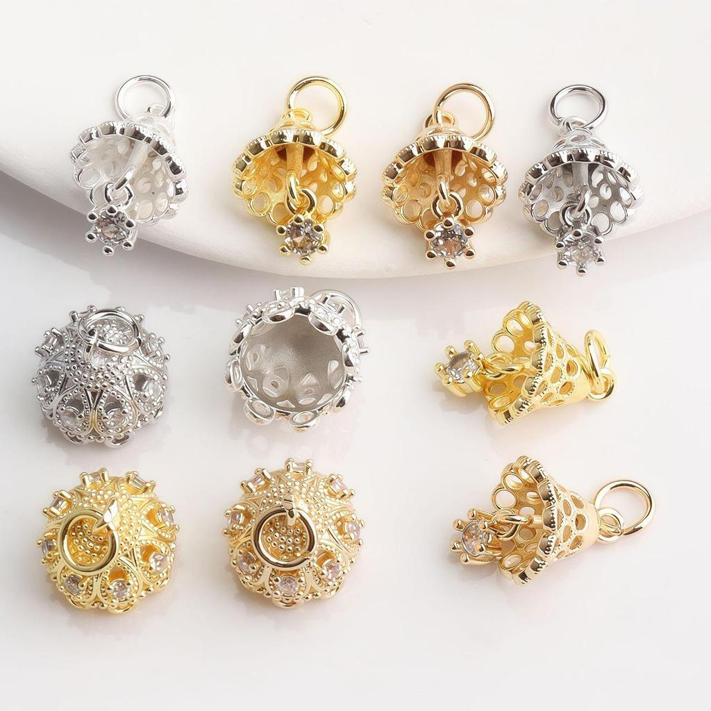 שרשרת תליון פעמון חג המולד עם תליון כתר זירקון ממולא זהב 14K