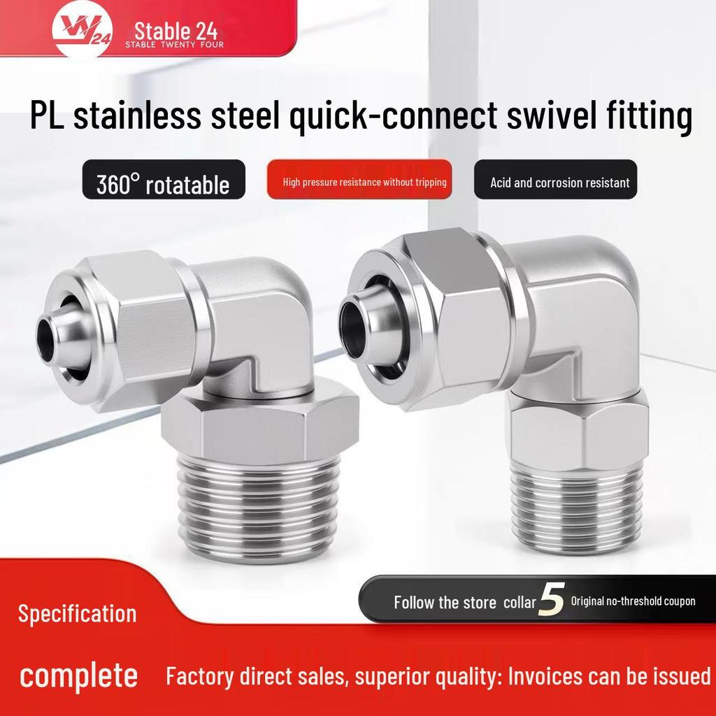 304 Stainless Steel 90° Quick-Connect Swivel Elbow Pneumatic Hose Fitting