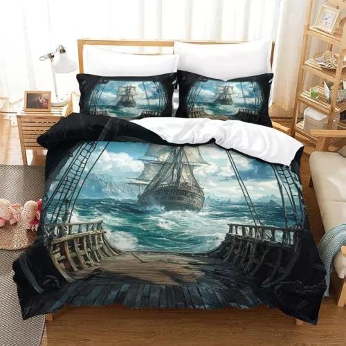 Pirate Ship Duvet Cover Set Bed Decoration First Choice Gift Suitable For Children Boys Girls And Adults Soft Warm Breathable