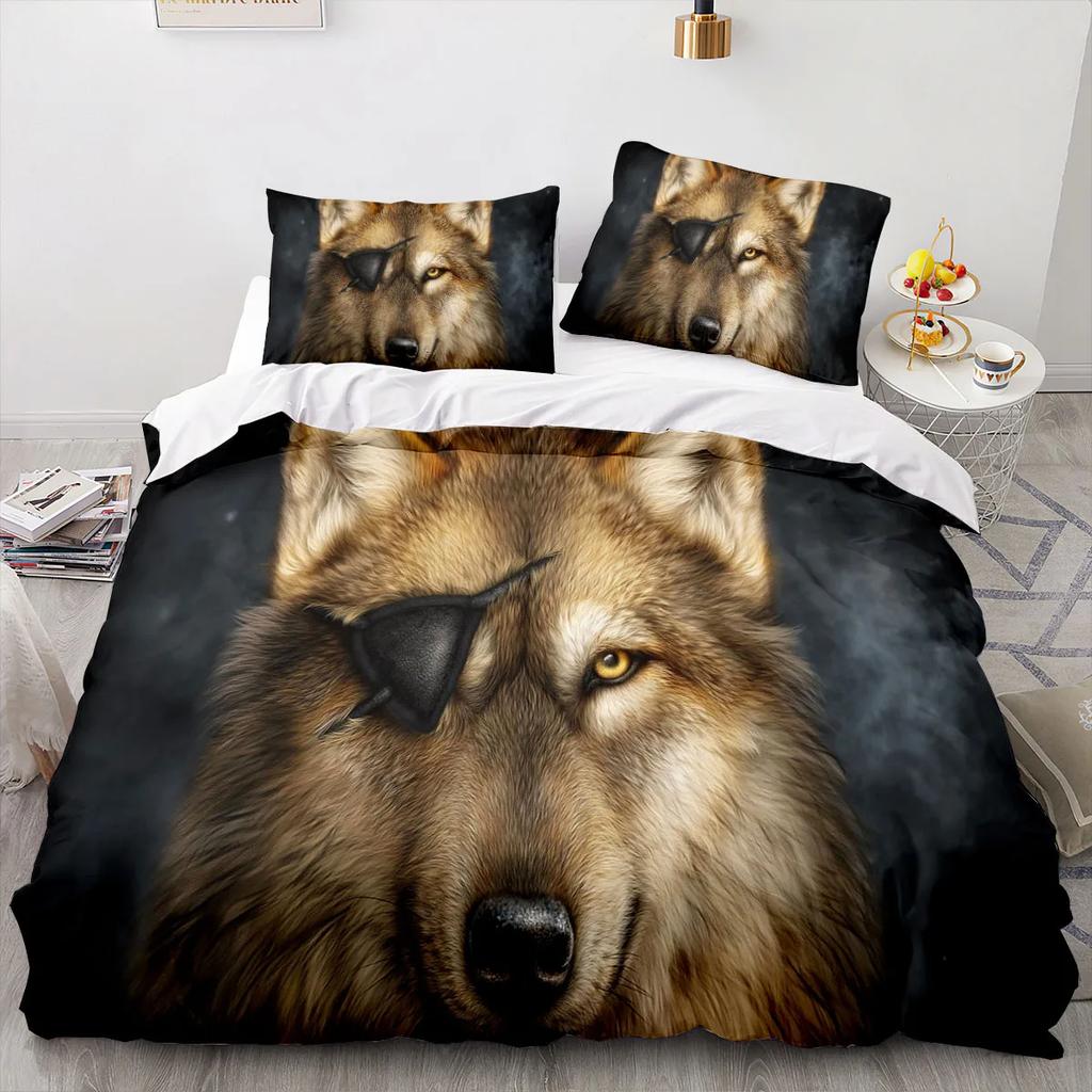 Wolf Duvet Cover King Queen Size Cool One-Eyed Lone Wolf Bedding Set For Teens Adults Wild Animal 2/3Pcs Polyester Quilt Cover