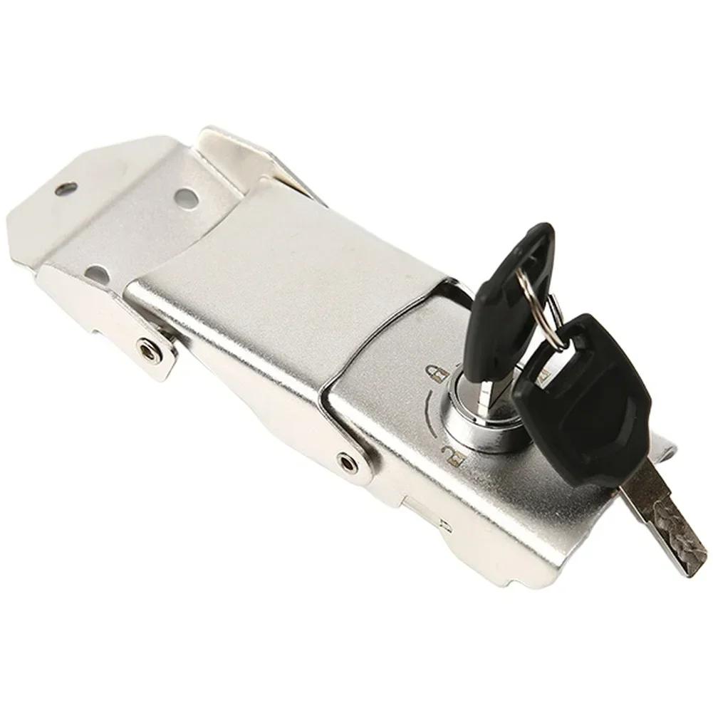 Weather Resistant Detachable Stainless Steel Motorcycle Buckle Lock with 2 Keys for Side Boxes Tail Boxes and Hinged Storage