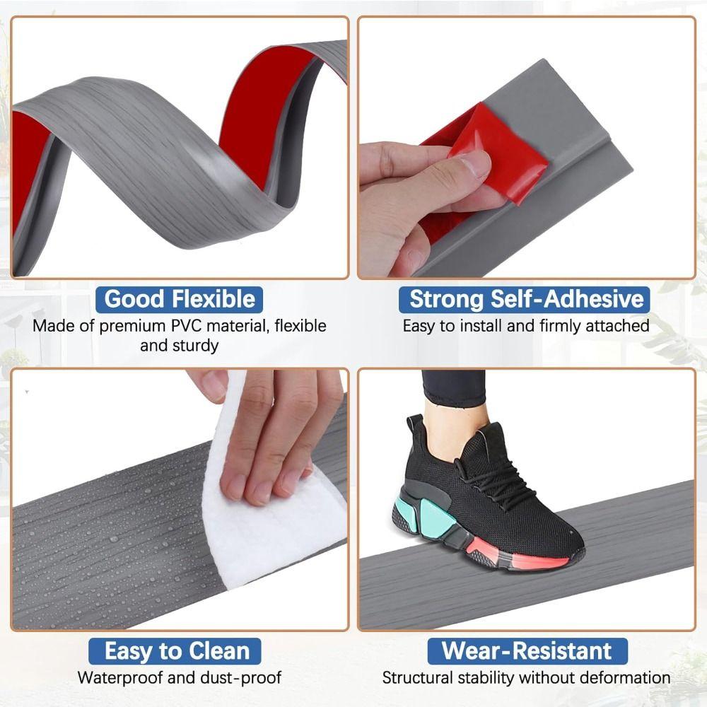 Durable Carpet to Tile Floor Transition Strip Self Adhesive Wear-resistant Threshold Ramp Cuttable PVC Edging Trim Household