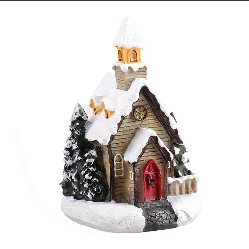 Resin Lit Mini House Decor With LED Light Christmas Village Scene Ornament For Tabletop Window Display And Tree Decoration
