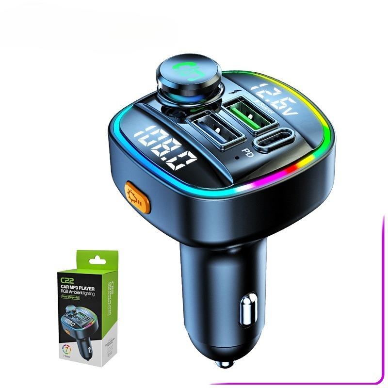 C22 Dual Display Voltage Detection Car Mp3 Bluetooth Player Usb Fast Charging Charger Car Fm Transmitter