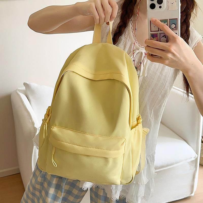 Solid color simple backpack girls' junior high school college student schoolbag large capacity niche versatile design large capacity backpack