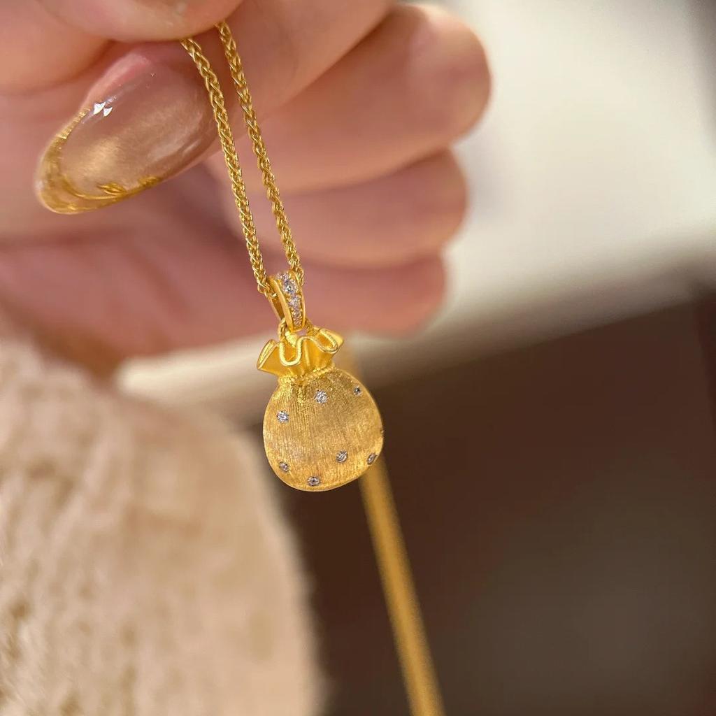 Small Fading Gold No Necklace Exquisite Collarbone Chain Full Of Blessing Light Luxury Titanium Steel Brushed Lucky Bag