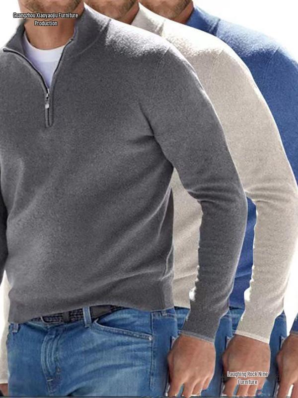 New Men's Autumn V-Neck Long Sleeve Plush Zipper Casual Polo Shirt