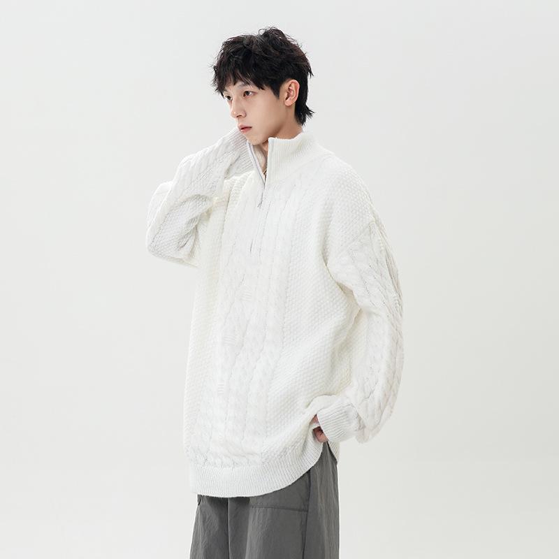Elevate your autumn and winter wardrobe with this stylish half-zip knit sweater, designed with a blend of modern Korean fashion and casual elegance. Featuring a half-high, round neckline, this sweater offers both comfort and contemporary style. The long sleeves and standard thickness make it an ideal choice for those cooler days. Crafted from premium polyester, it provides both warmth and durability. Perfect for youth fashion lovers looking for a versatile and chic addition to their seasonal attire.