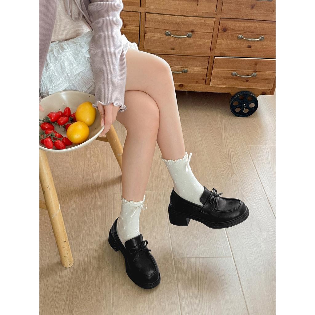 Black retro British style thick heel small leather shoes 2026 new spring and autumn with skirt small heightening loafers
