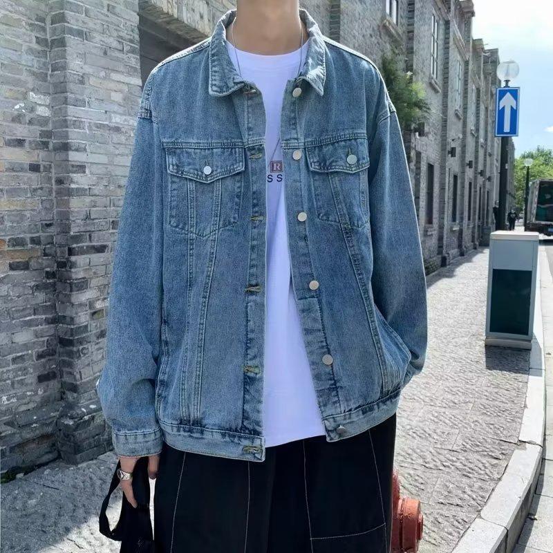 Men's Trendy Hong Kong-Style Denim Jacket - Spring/Autumn Loose Fit Korean Retro Workwear