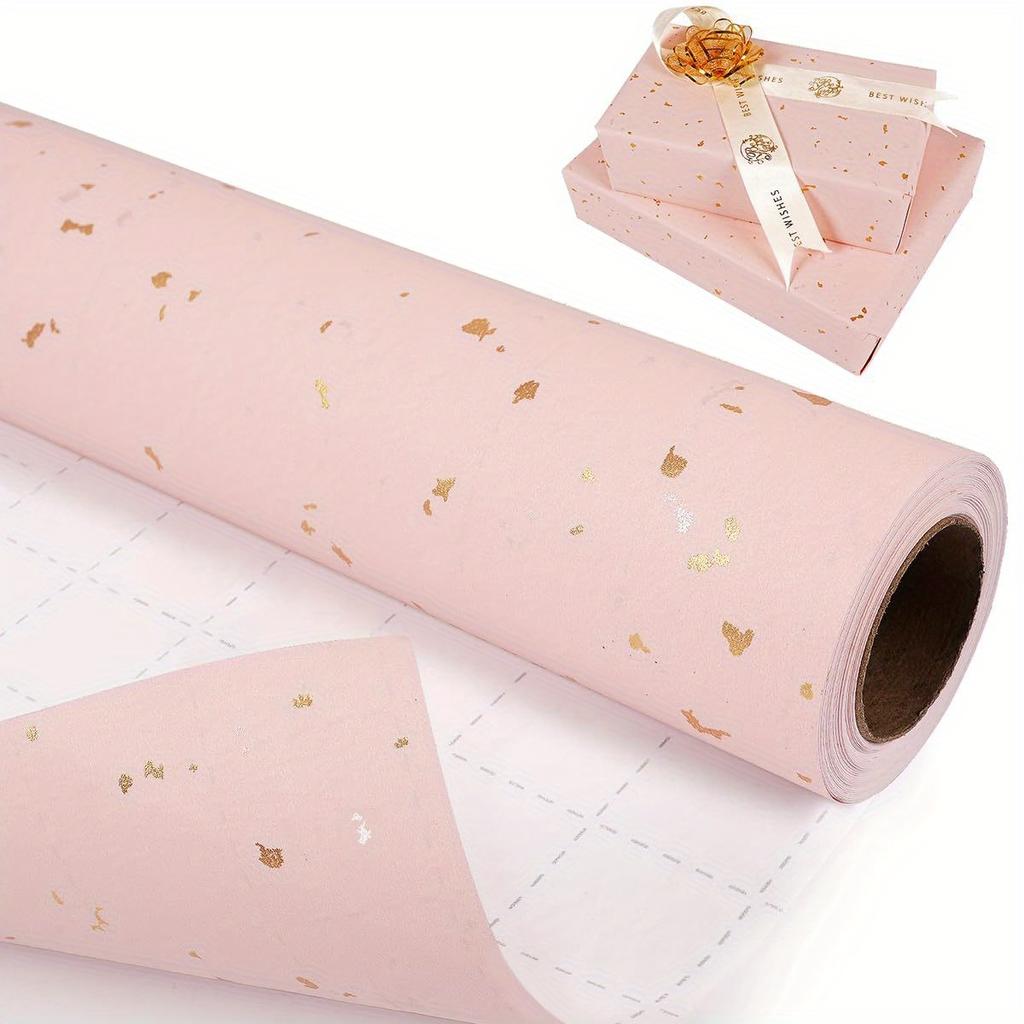 1 Roll Wrapping Paper, Pink and Golden Foil Wrapping Paper, Kraft Paper Gift Wrap with Silvery and Golden Foil for Christmas