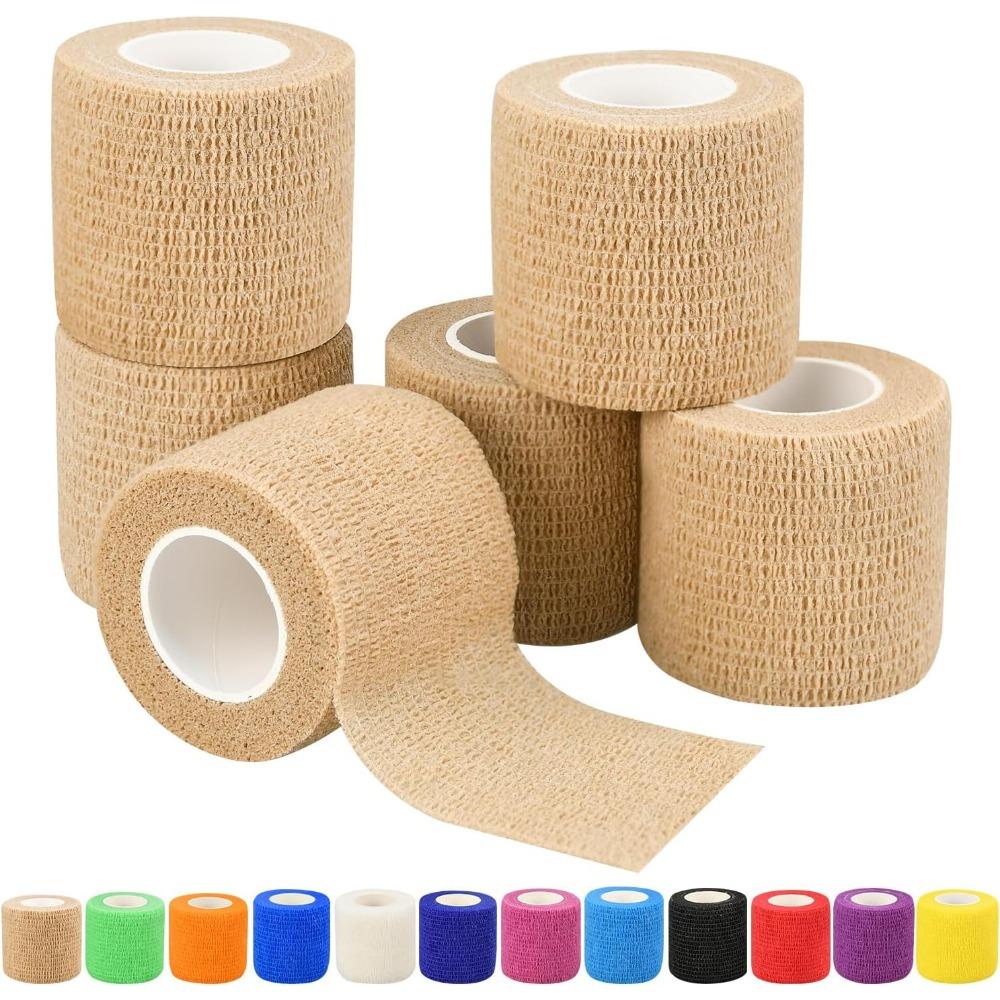 6 יחידות תחבושות דביקות עצמיות 5 ס"מ (2 אינץ'), תחבושות וטרינריות, 12 צבעים לבחירה, תחבושות דביקות עצמיות באורך 4.5 מטר (5 יארד) לספורט, פרק כף היד, הקרסול ונפיחות