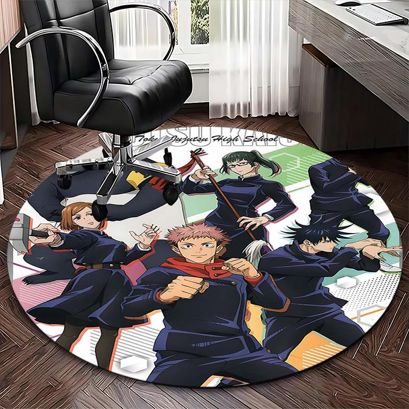 1pc Tokyo Jujutsu High School Anime Round Carpet Office Chair Mat, NonSlip Rug with Cute Uniform Design for Home