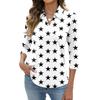Women's Fashion Casual Lapel Short 3/4 Sleeve Print Shirt Women's Up Tops