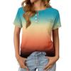 Women's Fashionable Casual Summer Gradient V-neck Button Short-sleeved Top