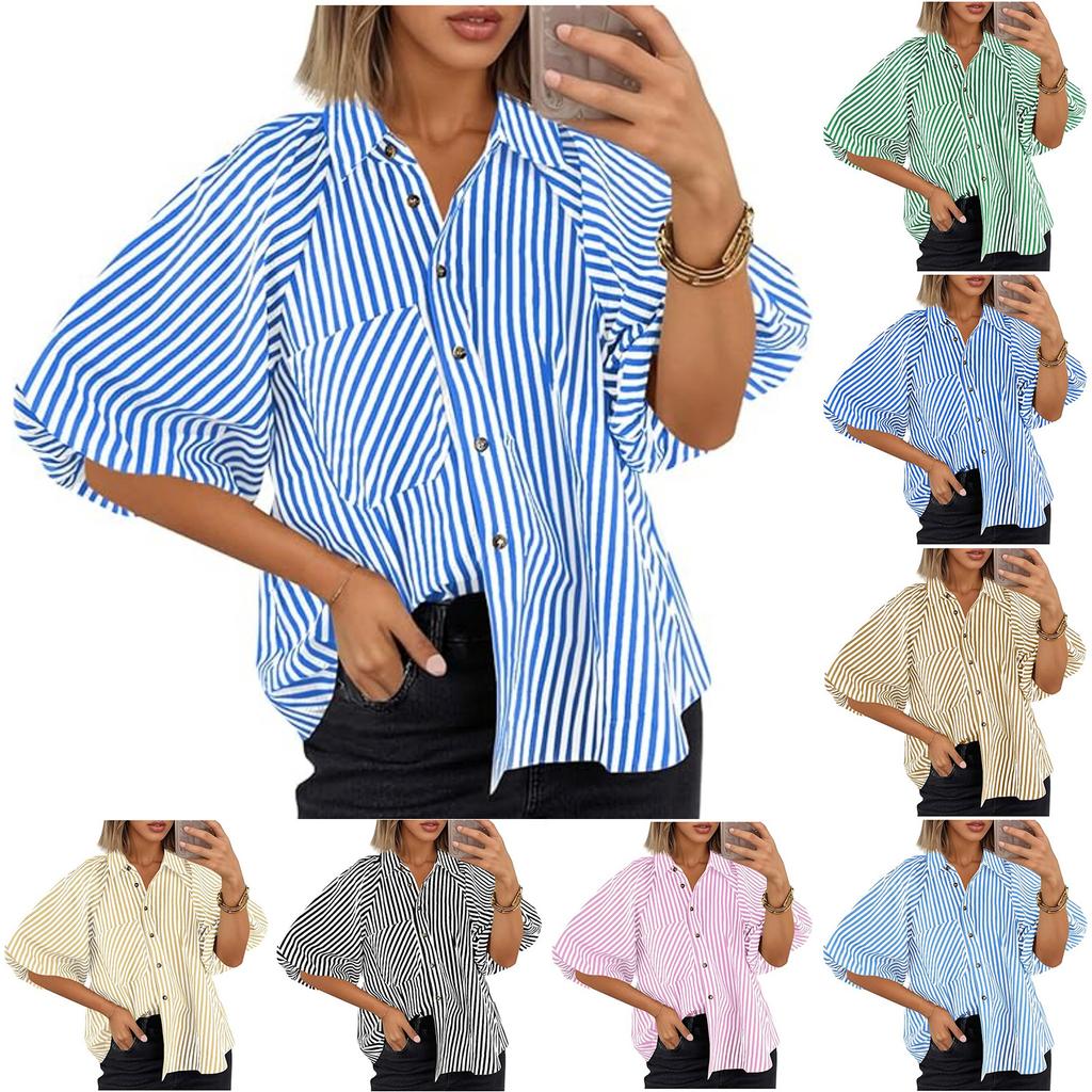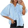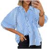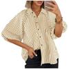 Women's Striped Fashionable Casual Loose Shirt With A Lapel Pocket Top
