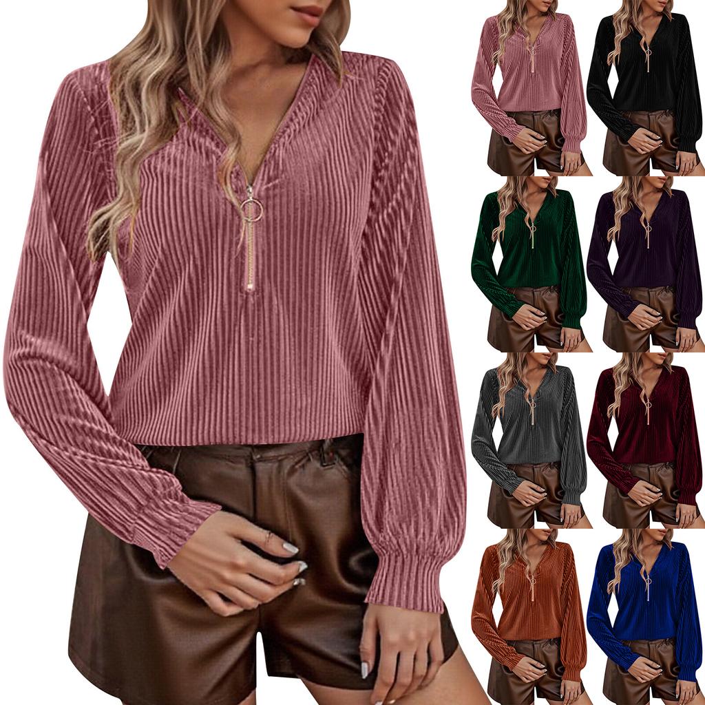 Women's Fashion Velvet Zipper Oversized Casual Long-Sleeve Top