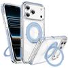 Crystal Clear Magnetic Case With 360 Rotating Kickstand Airbag Shockproof 3D Color Strip For iPhone 12 To 17 Pro Max Wireless Charging