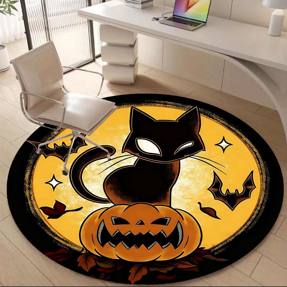1PC Halloween Cat Office Round Area Rug, Mat Suitable ForOffice, Under Office Chairs Bedroom Living Room Home Decor, Room Deco