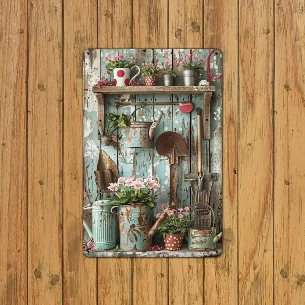 Vintage Metal Sign Rustic Garden Tool Decor 8x12 Inch Weathered Blue Wood Look Weather Resistant For Indoor Outdoor