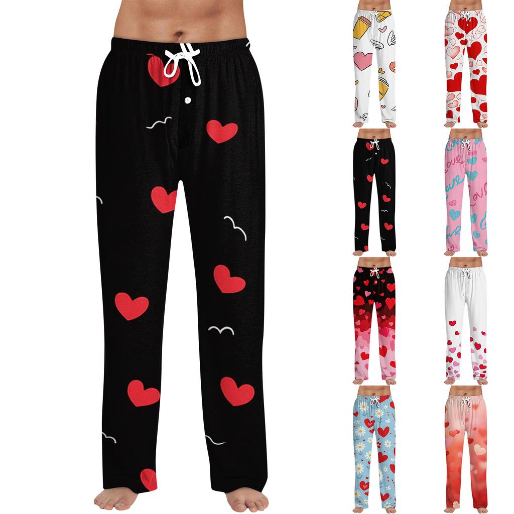 Men's Valentine's Day Printed Drawstring Long Pants Casual Pajamas