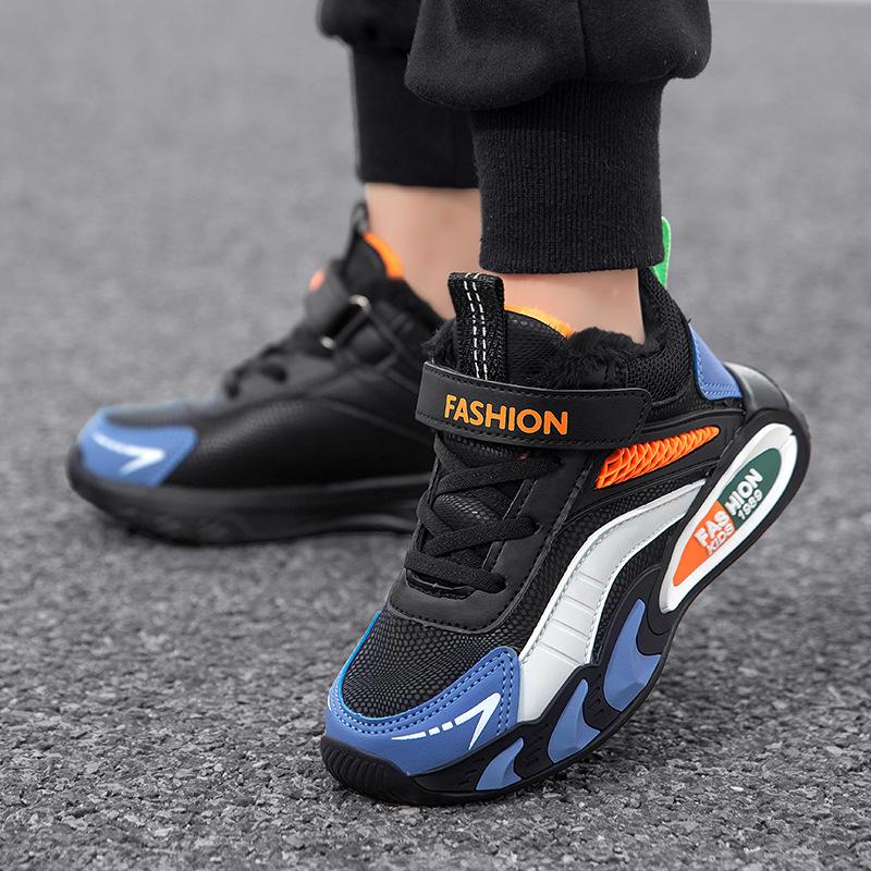 Boys' Winter 2025 Thickened Basketball Shoes - Warm Cotton with Trendy Velvet for Middle and Big Kids