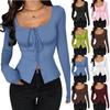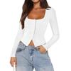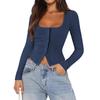 Women's Fashionable Color Square Neck Knitted Thread Single Button Slim Fit Long Sleeved Top
