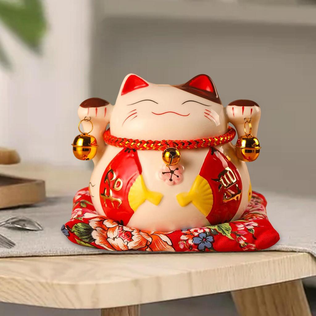 Cute Lucky Cat Money Bank Animal Statue Sculpture Money Box Ceramic Ornament for Desk Decor Collection Business Gift